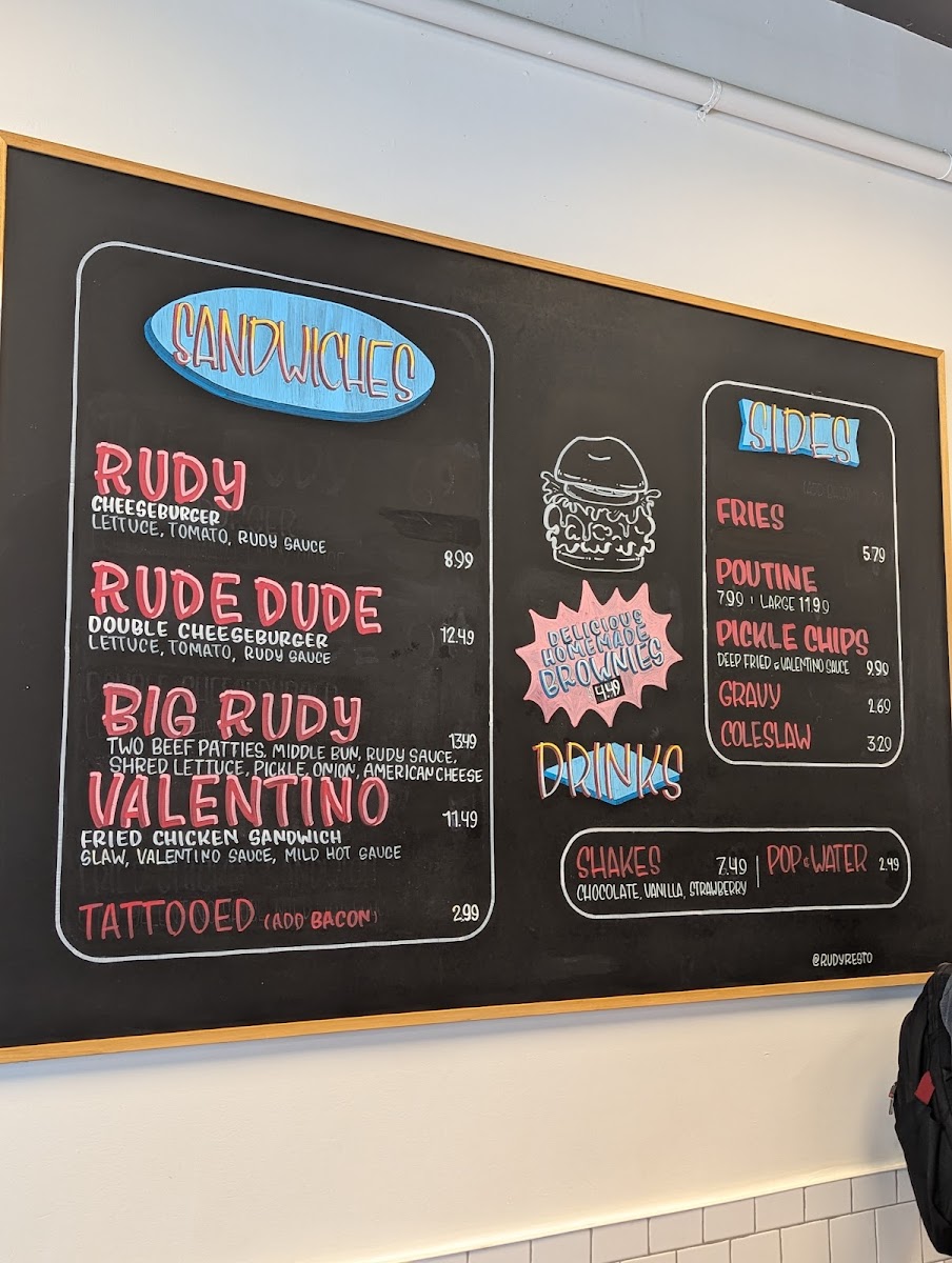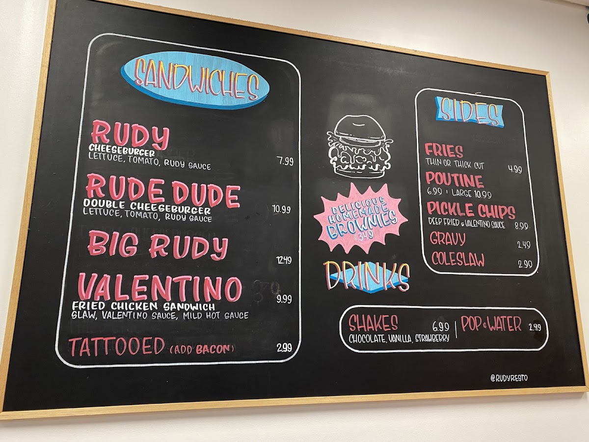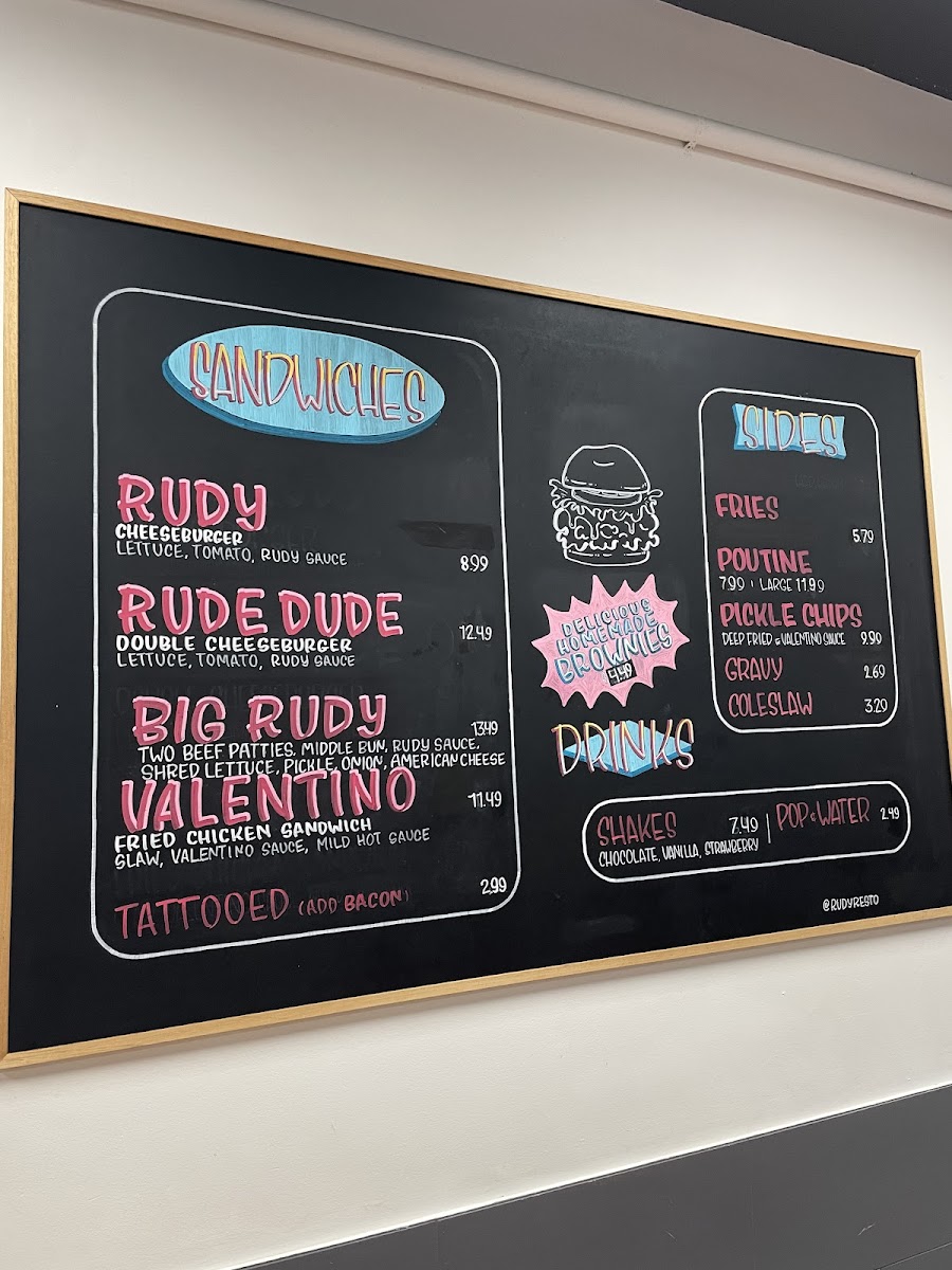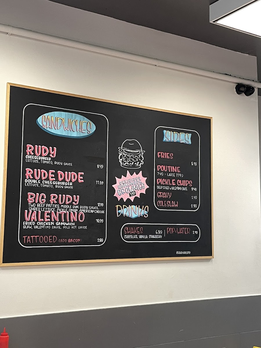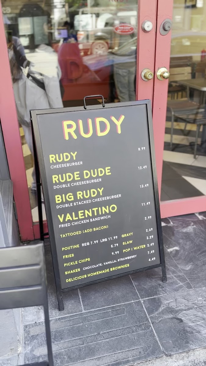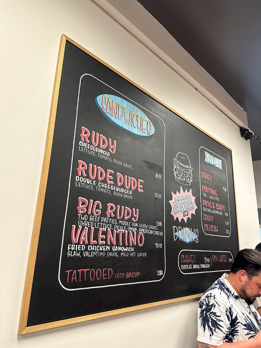 Their signature burgers, like the Rude Dude Double Cheeseburger and Rudy Cheeseburger, are made with quality ingredients and are bursting with flavor. If you're in the mood for something different, the Valentino Fried Chicken Sandwich with slaw, Valentino sauce, and mild hot sauce on the side is a must-try.